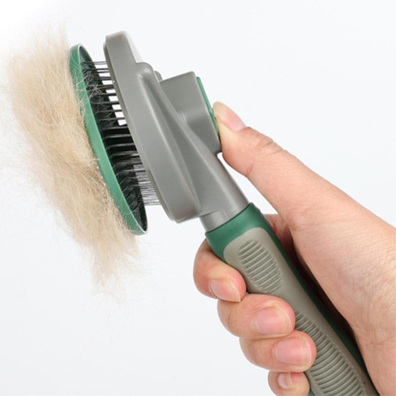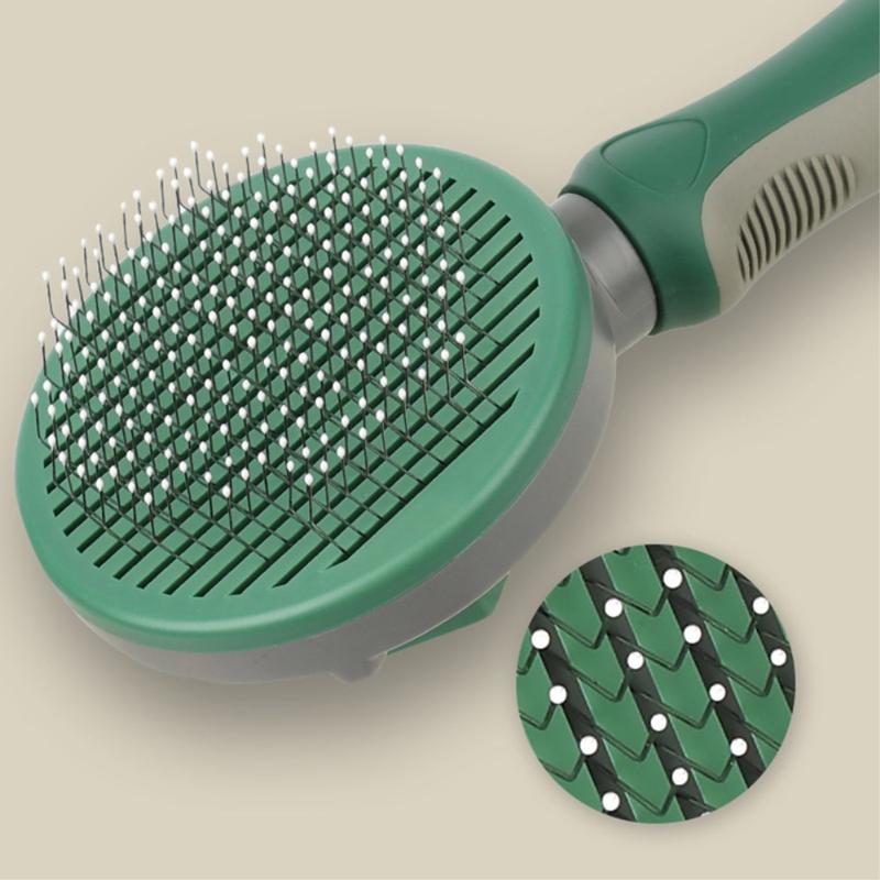 - Selbstreinigungsknopf: Entfernt mühelos angesammelte Haare aus dem Kamm und sorgt so für eine effiziente und hygienische Fellpflege.