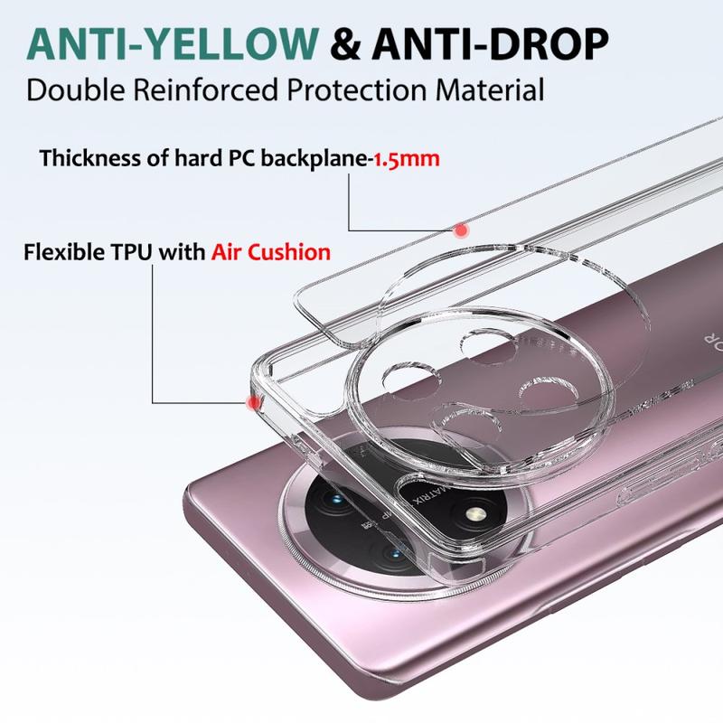Dieses Zubehör verwendet eine Kombination aus Acryl und TPU, um Ihr Smartphone in einem makellosen Zustand zu halten. Die verstärkten, stoßdämpfenden Ecken verhindern Sturzschäden, während das transparente Design das wunderschöne Design Ihres Honor Magic7 Lite unterstreicht.