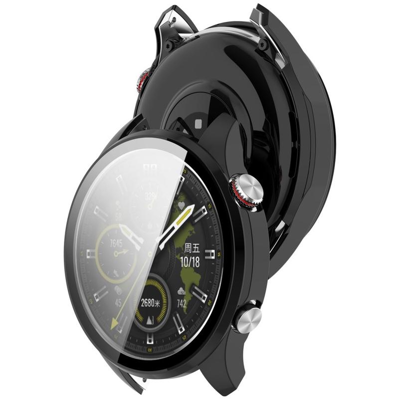2-in-1-Design, die ideale Lösung, um Ihre wertvolle Honor Watch 5 Pro vor täglichen Schäden zu schützen. Der Bildschirmschutz aus gehärtetem Glas macht die Uhr kratzfest, beeinträchtigt aber nicht die Berührungsempfindlichkeit und die Helligkeit des Bildschirms. Eingerahmt mit Kunststoff, verleiht es Ihrer Honor Watch 5 Pro mehr Schönheit.