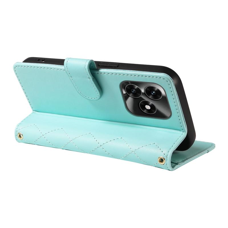• Luxus Gesteppte Wallet Hülle mit Schulter & Handgelenk Strap für Honor X5c Plus - Rhombus-Muster Schutzhülle