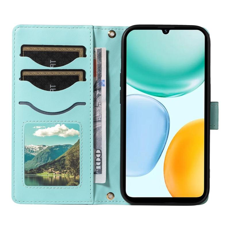 Honor X5c Plus Luxus Gesteppte Wallet Hülle - Grün
