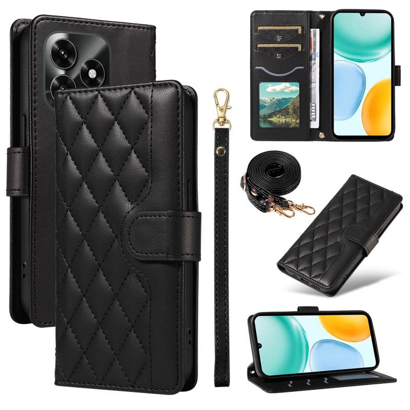 • Luxus Gesteppte Wallet Hülle mit Schulter & Handgelenk Strap für Honor X5c Plus - Rhombus-Muster Schutzhülle