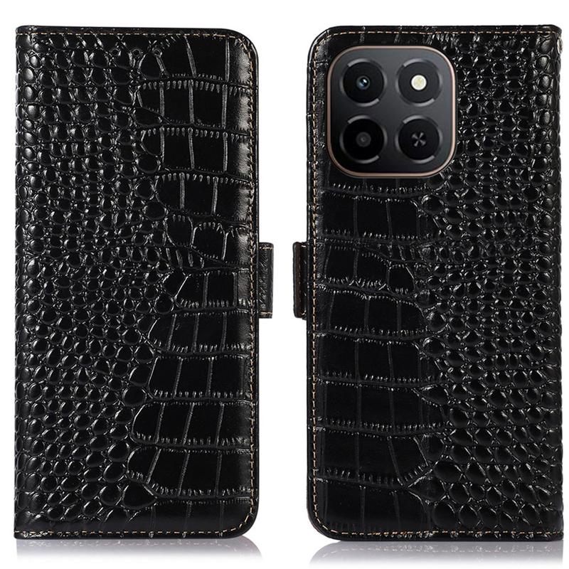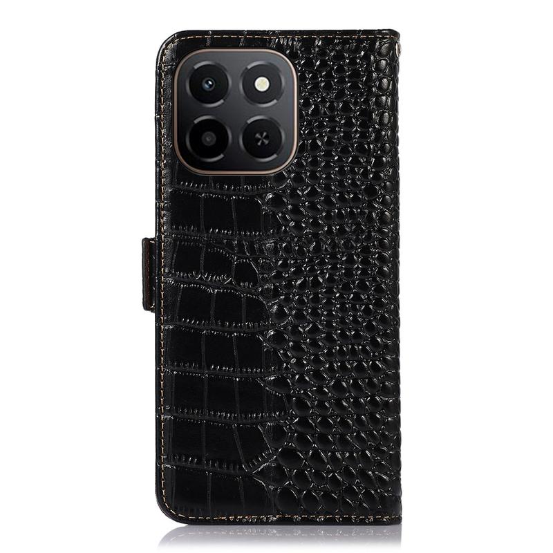 Honor X6c Crocodile Serie Lederhülle mit Geldbörse mit RFID - Schwarz