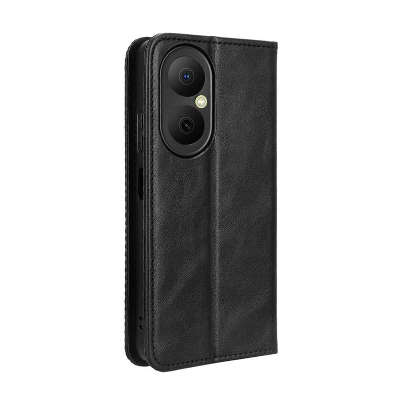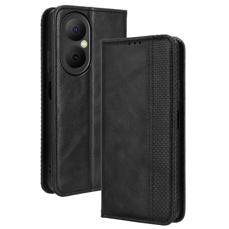 Huawei Enjoy 80 Retro Wallet Schutzhülle mit Magnetverschluss - Schwarz