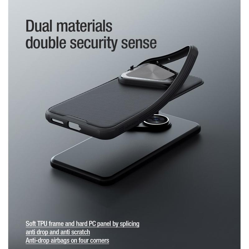 - Dieses außergewöhnliche Nillkin CamShield Prop-Hybridgehäuse besteht aus Kunststoff und TPU-Materialien