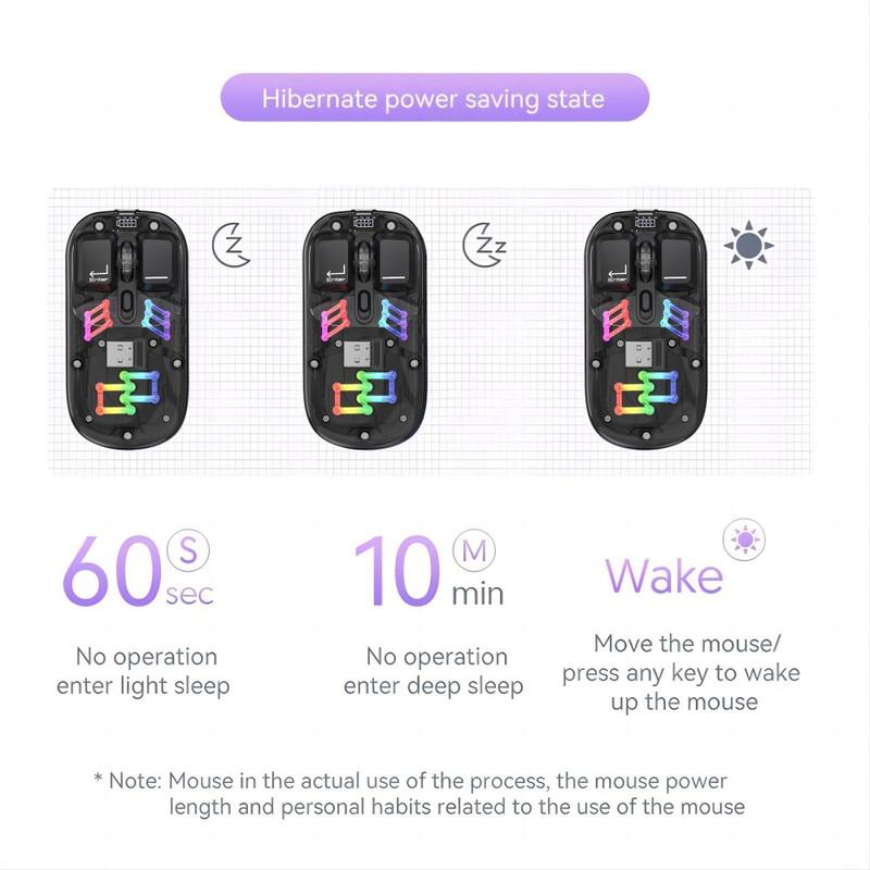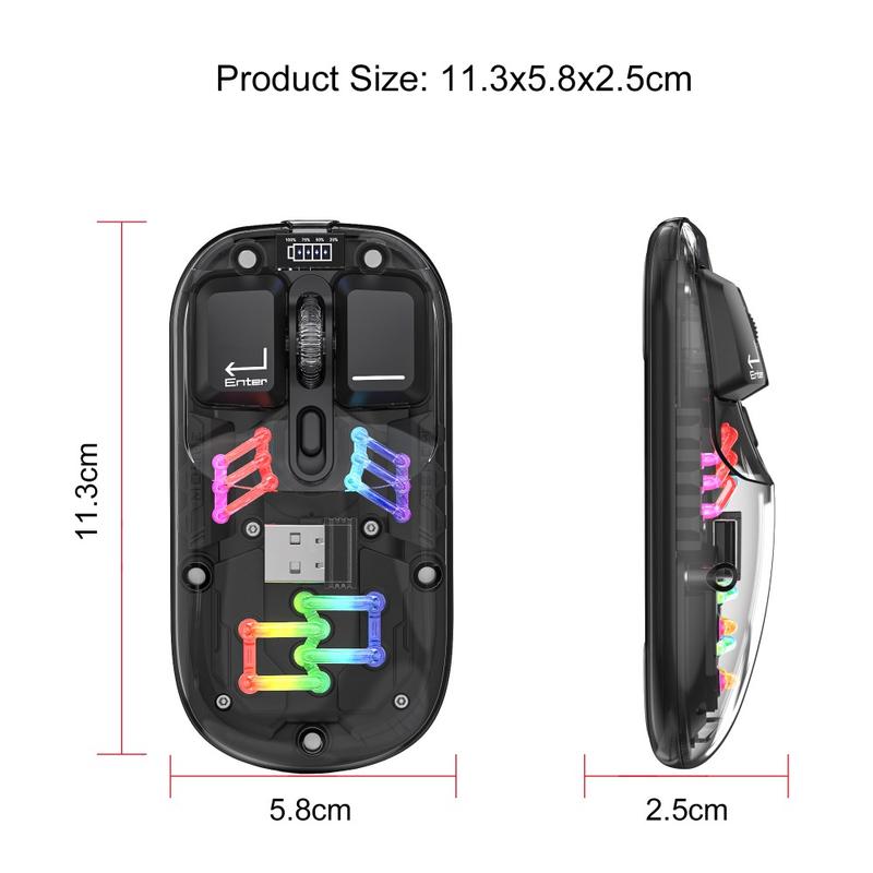 Die kabellose Bluetooth-Maus HXSJ T200 bietet doppelte Konnektivität über Bluetooth und 2,4-GHz-Funk und unterstützt die gleichzeitige Verbindung mit zwei Geräten. Die aus transparentem PC-Material gefertigte Maus mit anpassbarer RGB-Beleuchtung bietet ein hochwertiges Aussehen und überlegene Funktionalität. Mit einstellbarer DPI (800/1200/1600), einem langlebigen 400-mAh-Akku und einem schlanken, ergonomischen Design sorgt sie für eine präzise und reibungslose Bedienung. Die Maus eignet sich sowohl für die Arbeit als auch für Spiele und verbessert die Effizienz und den Komfort mit leisen Klicks und lebendiger Beleuchtung.