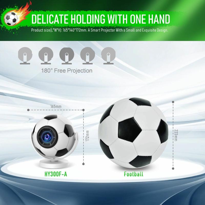 HY300F tragbarer Projektor in Fußballform - WiFi 6, Android 14, 170 ANSI-Lumen, 720p-Heimkino-Projektor - EU-Stecker