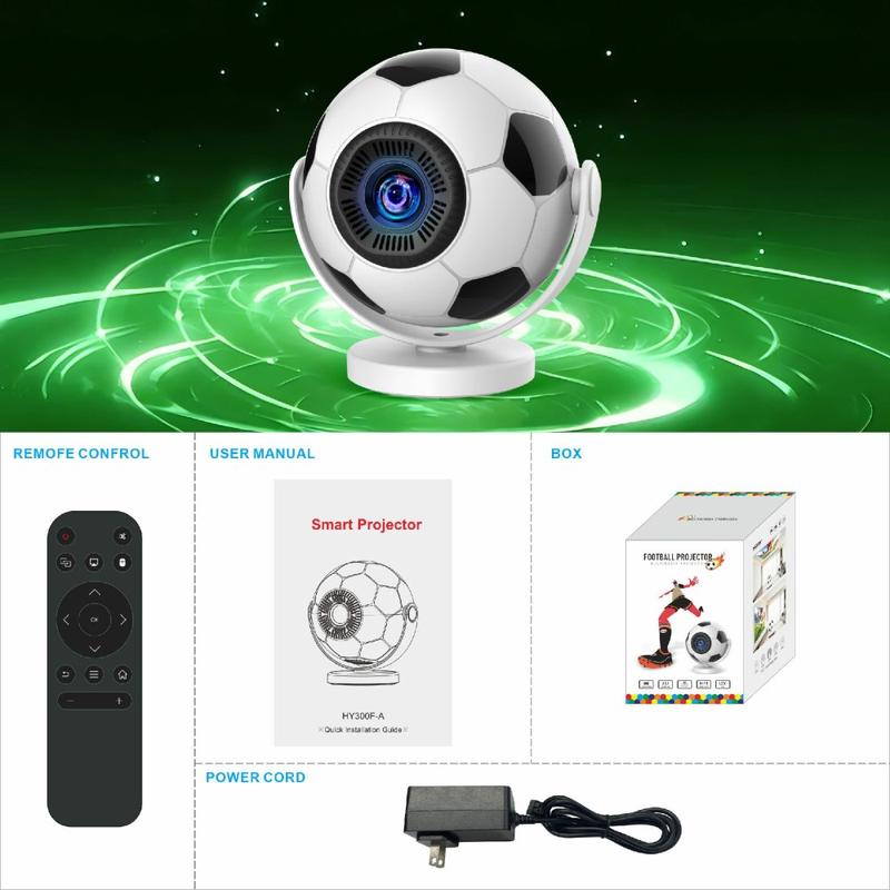 Holen Sie sich mit dem tragbaren Projektor HY300F in Fußballform Großbildunterhaltung auch in kleinere Räume. Dieser kompakte Smart-Projektor besticht durch sein markantes, vom Fußball inspiriertes Design und verbindet verspielten Stil mit praktischen Home-Entertainment-Funktionen. Ganz gleich, ob Sie Filme streamen, Live-Sport verfolgen, Serien genießen oder Inhalte an die Wand oder Decke Ihres Schlafzimmers projizieren möchten - dieses Modell bietet eine einfache und flexible Möglichkeit, zu Hause ein noch intensiveres Seherlebnis zu schaffen.