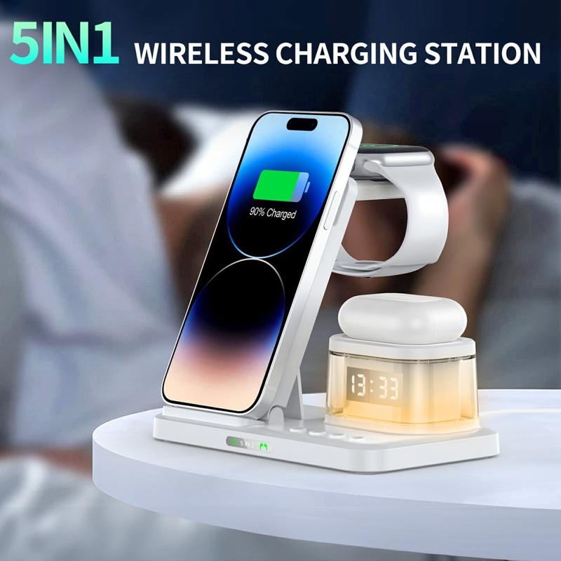 Rüsten Sie auf die HYY-H33 5-in-1 Wireless Charging Station auf - Ihre All-in-One-Lade- und Nachtlichtlösung für einen intelligenteren, aufgeräumten Raum!