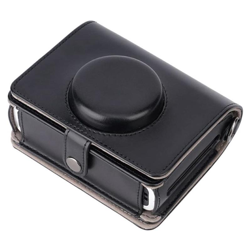 • Instax mini Evo PU-Leder Retro-Kameratasche Anti-Sturz-Schutzhülle mit Schulterriemen - Schwarz