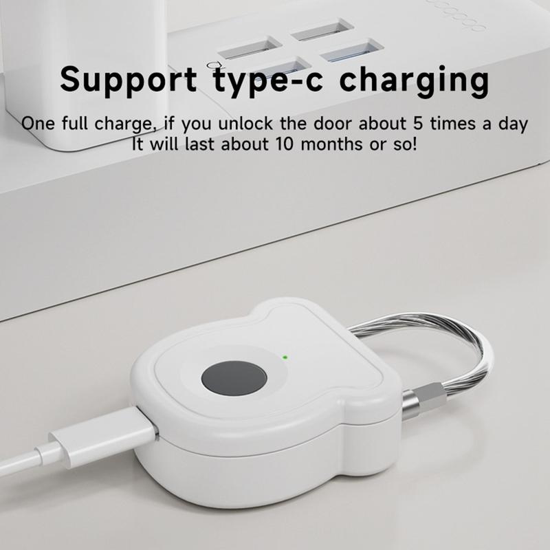 Laden Sie das Vorhängeschloss schnell über den USB-C-Anschluss auf, um eine schnelle Durchlaufzeit und eine problemlose Stromversorgung zu gewährleisten.