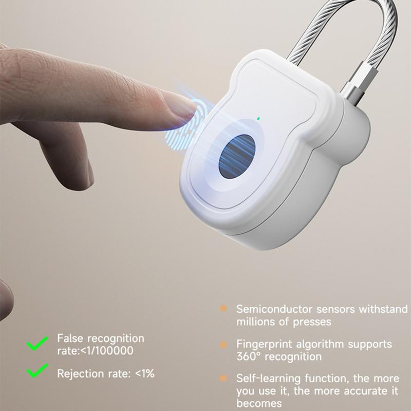 Dieses intelligente Vorhängeschloss verwendet einen Halbleiter-Fingerabdrucksensor, der bis zu 20 Fingerabdrücke speichern kann. Der selbstlernende Algorithmus verbessert die Genauigkeit im Laufe der Zeit und sorgt für eine schnellere und zuverlässigere Entriegelung bei jedem Gebrauch.