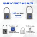 Sorgen Sie mit diesem intelligenten Fingerabdruck-Vorhängeschloss für mehr Sicherheit bei Ihren persönlichen Gegenständen - ein kompaktes, schlüsselloses Schloss, das für den täglichen Komfort entwickelt wurde. Anstelle von Schlüsseln oder Passwörtern wird es per Fingerabdruck entriegelt, was es zu einer praktischen Wahl für Schränke, Rucksäcke, Koffer, Spinde im Fitnessstudio und Aufbewahrungsboxen macht.