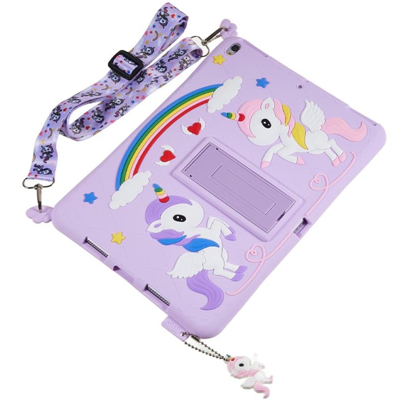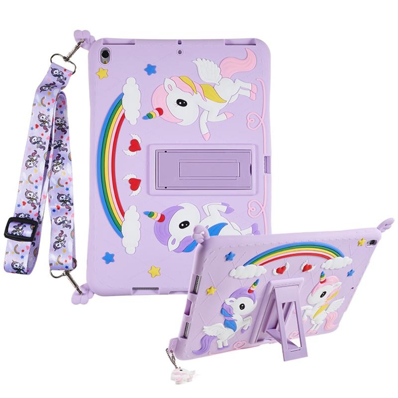 • iPad 10.2 2019/2020/2021, iPad Pro 10.5, iPad Air (2019) Niedliche Einhornhülle mit Kickstand und Riemen - Lila