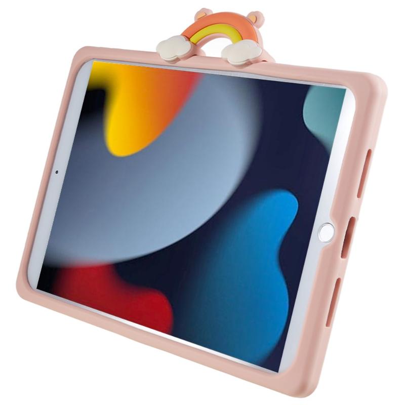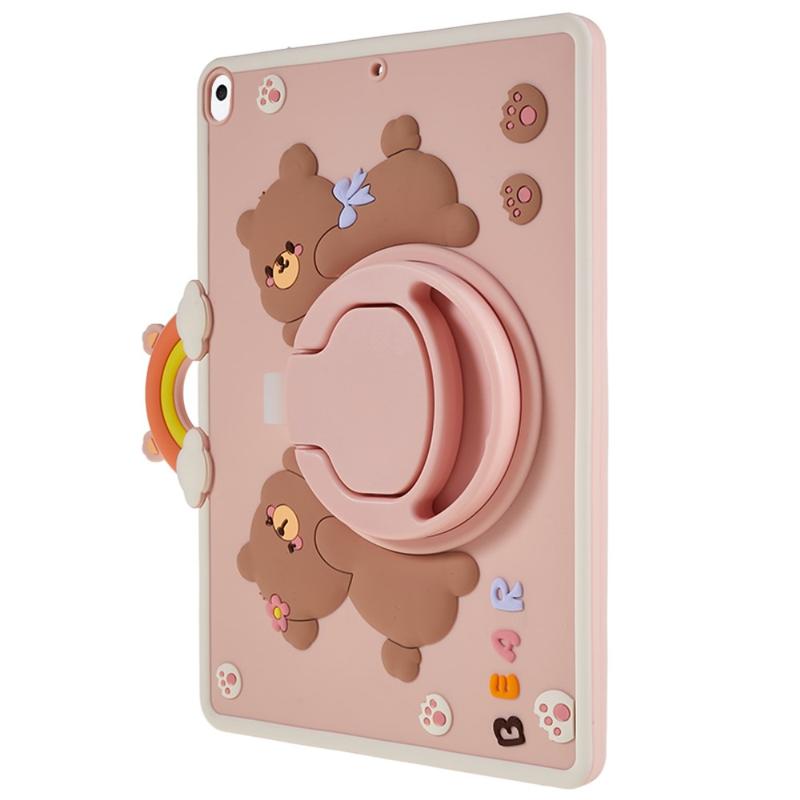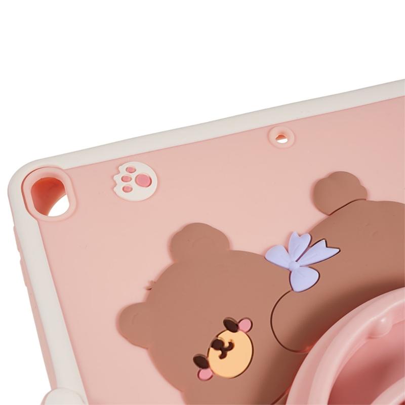 iPad 10.2 2019/2020/2021 Cartoon Bär Silikonhülle mit Kickstand - Pink