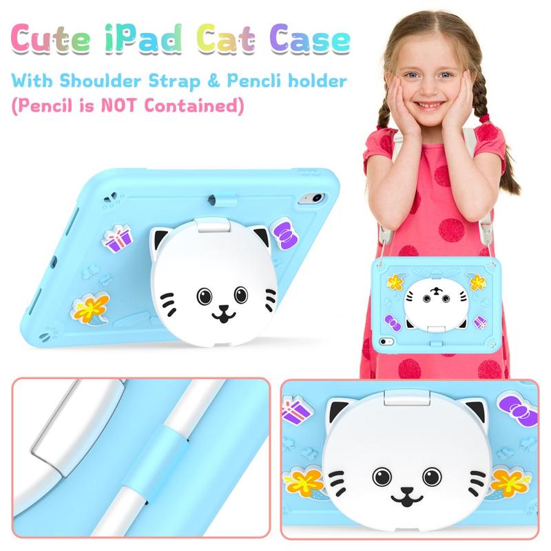 Niedliche Katzen-Hybridhülle mit Kickstand, Schulterriemen und Stylus-Halterung für iPad (2022), iPad (2025)