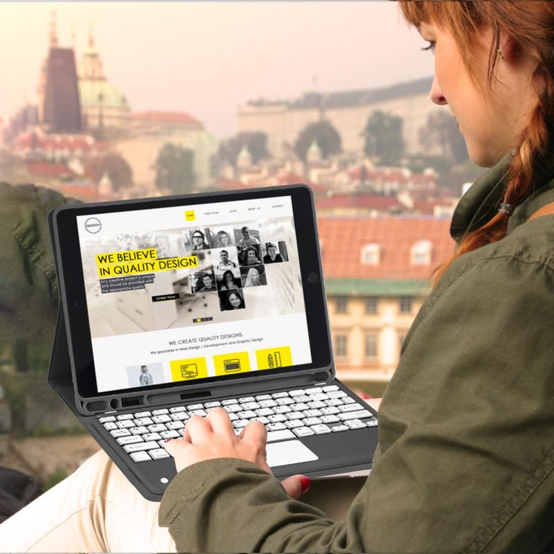 Erweitern Sie Ihr iPad Air 11 2026/2025/2024, iPad Air 2022/2020 mit der Bluetooth-Tastaturhülle, einem multifunktionalen 2-in-1-Zubehör, das Schutz, Produktivität und Stil vereint. Diese elegante Hülle aus hochwertigem Polyurethan bietet umfassenden Schutz vor Kratzern, Stößen und Fingerabdrücken und sieht dabei auch noch professionell aus. Die Bluetooth-Tastatur lässt sich kabellos verbinden und ermöglicht ein flüssiges, reaktionsschnelles Tippen, während das integrierte Touchpad eine Multi-Gesten-Steuerung für müheloses Navigieren unterstützt. Dank der beleuchteten Tastatur können Sie auch in schwach beleuchteten Umgebungen bequem tippen. Der integrierte, verstellbare Ständer bietet einen ergonomischen Betrachtungswinkel und eignet sich somit perfekt zum Tippen, Streamen oder Lesen. Diese Tastaturtasche wurde für den Geschäfts-, Reise- oder Alltagsgebrauch entwickelt und verwandelt Ihr Tablet in eine tragbare Workstation.