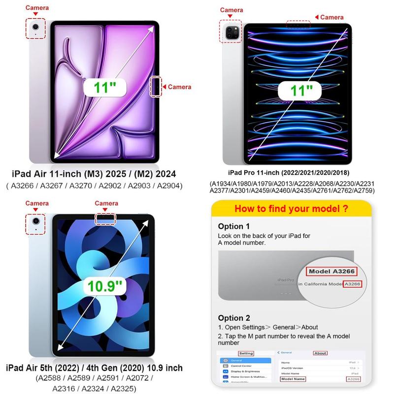 Diese iPad Air 11 2026/2025/2024, iPad Air 2022/2020 Tastaturtasche vereint Funktionalität und Eleganz. Sie ist ideal für Berufstätige, Studenten und Reisende, die ein komfortables Tipperlebnis, vollständigen Geräteschutz und intelligente Navigation in einem kompakten Accessoire suchen.
