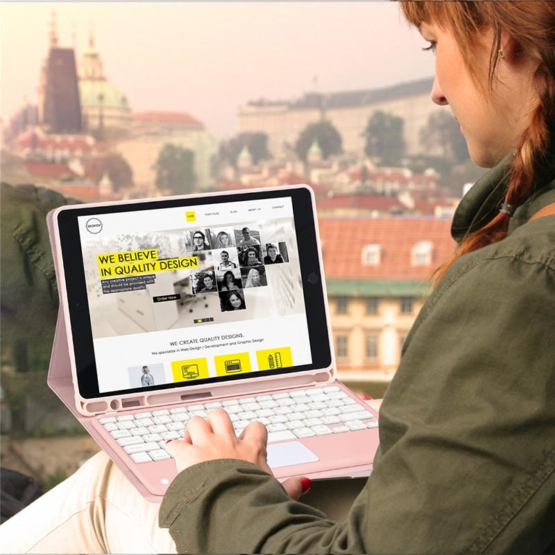 Erweitern Sie Ihr iPad Air 11 2026/2025/2024, iPad Air 2022/2020 mit der Bluetooth-Tastaturhülle, einem multifunktionalen 2-in-1-Zubehör, das Schutz, Produktivität und Stil vereint. Diese elegante Hülle aus hochwertigem Polyurethan bietet umfassenden Schutz vor Kratzern, Stößen und Fingerabdrücken und sieht dabei auch noch professionell aus. Die Bluetooth-Tastatur lässt sich kabellos verbinden und ermöglicht ein flüssiges, reaktionsschnelles Tippen, während das integrierte Touchpad eine Multi-Gesten-Steuerung für müheloses Navigieren unterstützt. Dank der beleuchteten Tastatur können Sie auch in schwach beleuchteten Umgebungen bequem tippen. Der integrierte, verstellbare Ständer bietet einen ergonomischen Betrachtungswinkel und eignet sich somit perfekt zum Tippen, Streamen oder Lesen. Diese Tastaturtasche wurde für den Geschäfts-, Reise- oder Alltagsgebrauch entwickelt und verwandelt Ihr Tablet in eine tragbare Workstation.