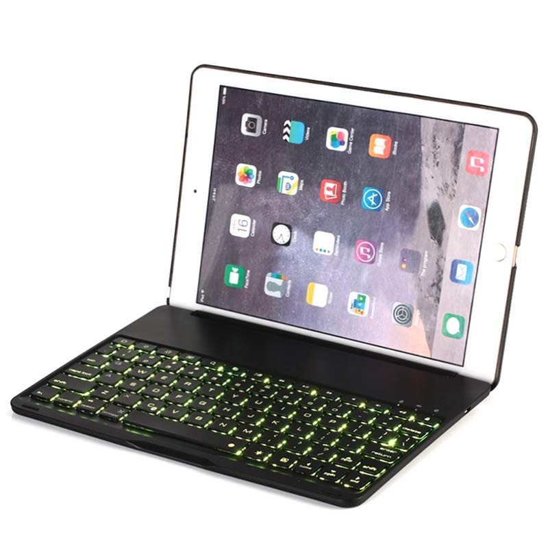 Witspad F8S Luminous Aluminum Bluetooth Tastatur & Tasche für iPad Air 2 - US Layout - QWERTY