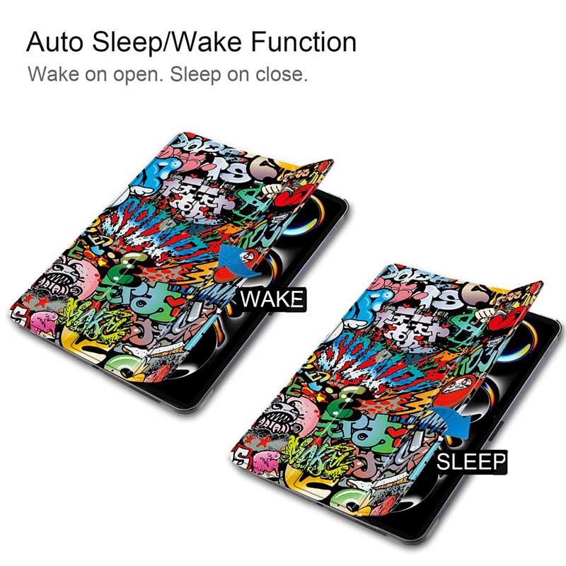 Egal, ob Sie ein Video ansehen oder mit einem Stift auf Ihrem iPad Pro 11 (2024), iPad Pro 11 (2025) zeichnen, diese Folio-Hülle hält es in einem idealen Winkel und sorgt für ein komfortableres und produktiveres Erlebnis. In der Zwischenzeit schaltet sich die intelligente Weck-/Schlaffunktion beim Öffnen der Frontklappe automatisch auf das Display ein.