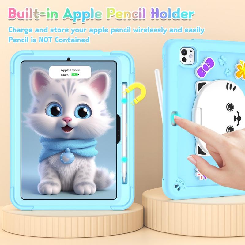• Niedliche Katzen-Hybridhülle mit Kickstand, Schulterriemen und Stylus-Halterung für iPad Pro 11 (2024), iPad Pro 11 (2025)