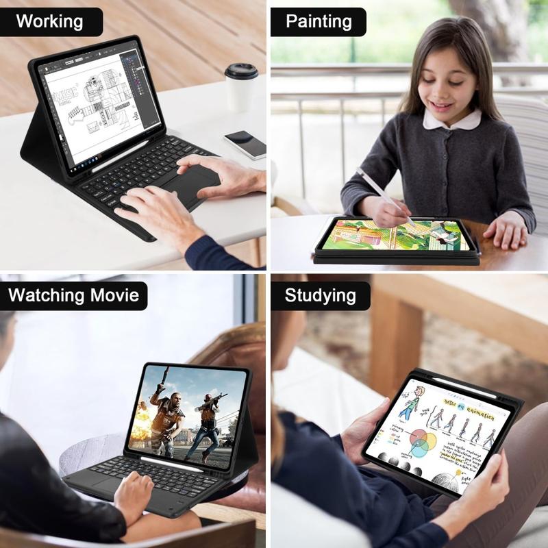 Diese Bluetooth-Tastaturhülle verwandelt Ihr iPad Pro 12.9 2018/2020/2021/2022 in wenigen Sekunden in einen tragbaren Laptop. Sie können die Bluetooth-Tastatur getrennt von der Hülle verwenden. Eine perfekte Wahl, um das Benutzererlebnis zu verbessern und Ihr iPad Pro 12.9 2018/2020/2021/2022 in einwandfreiem Zustand zu erhalten, ohne dabei Schaden zu nehmen.