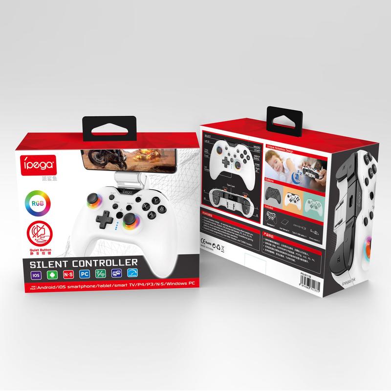 iPega PG-9111B Silent Wireless Gaming Controller mit RGB-Hintergrundbeleuchtung, Turbo-Funktion & Dual Vibration - Kompatibel mit Android/iOS/PS4/PC/Switch