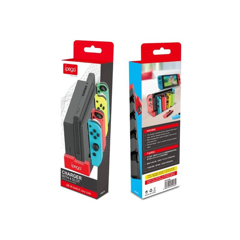 iPega PG-9186 ist eine Ladestation für 4 Stück Nintendo Joy-Cons und Nintendo Switch Konsole. Kompakte Größe, einfaches Anschließen und genug Leistung für eine schnelle Aufladung. Machen Sie sich keine Sorgen, wo Sie Controller oder Konsole platzieren, wenn Sie nicht spielen. Setzen Sie es in Ladestation und sicher sein, wenn Sie zurückkommen, wird es voll aufgeladen und bereit zu spielen.