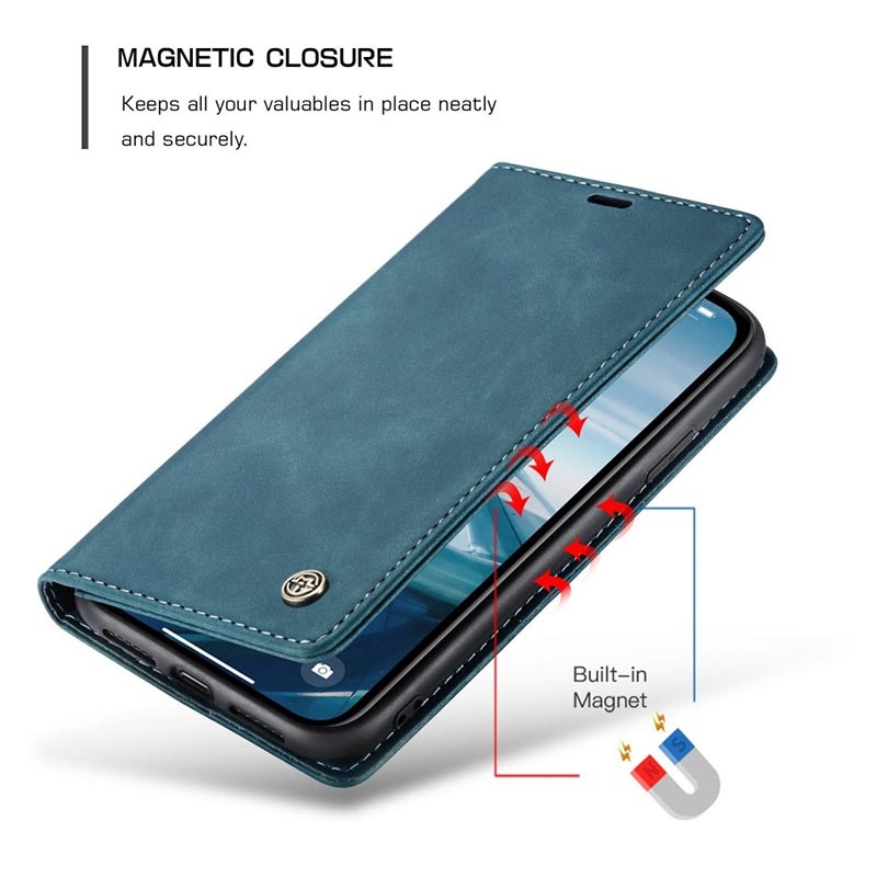 - Eingebaute Magnete halten die Caseme 013 Series Wallet-Hülle geschlossen