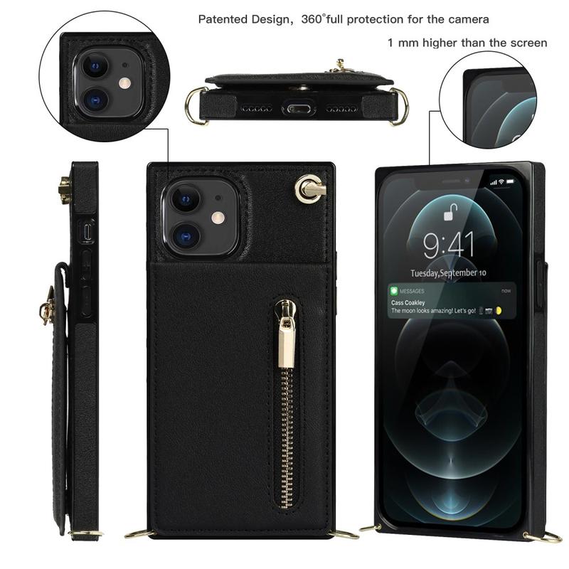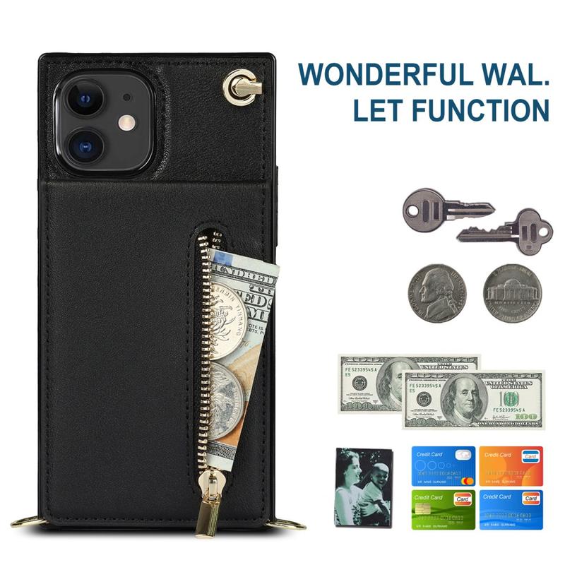 Hybrid-Hülle mit Brieftasche und Umhängeband für iPhone 11