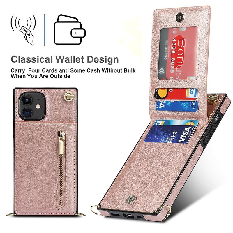 Hybrid-Hülle mit Brieftasche und Umhängeband für iPhone 11