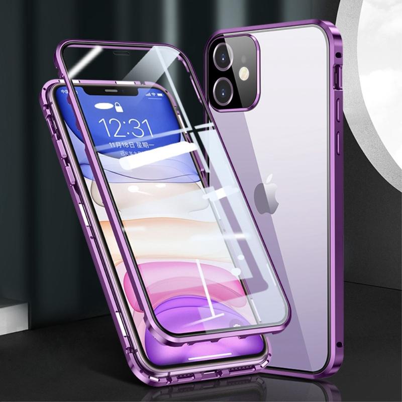 iPhone 11 Magnetisches Cover mit Panzerglas - Purpur