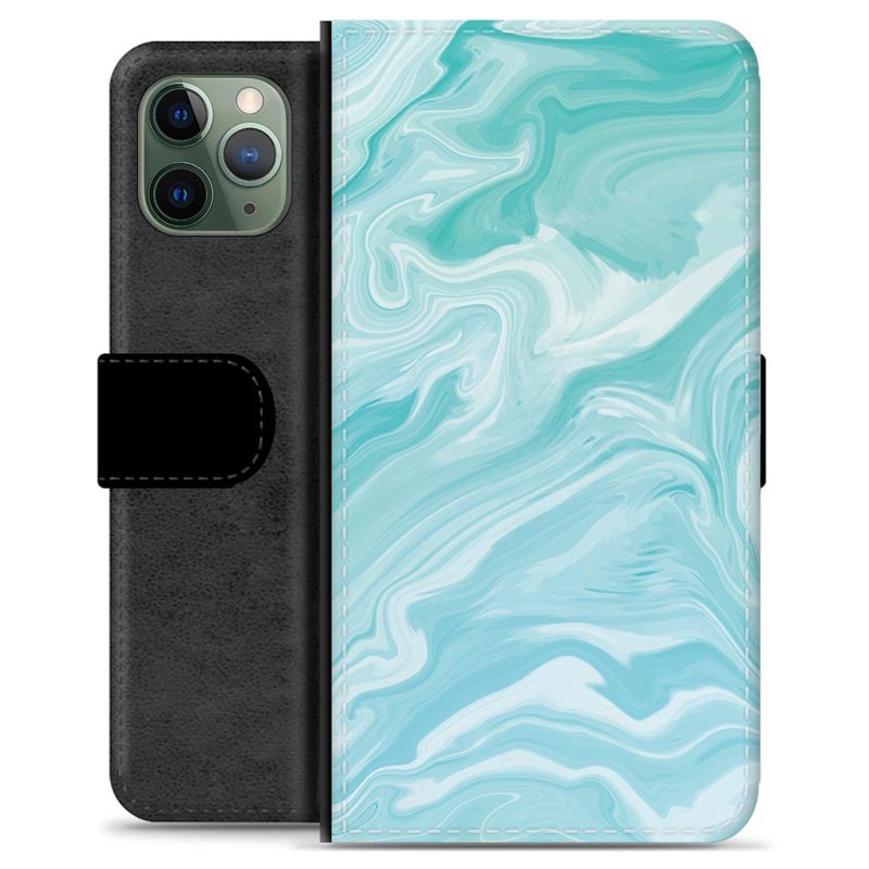 iPhone 11 Pro Premium Schutzhülle mit Geldbörse - Blauer Marmor