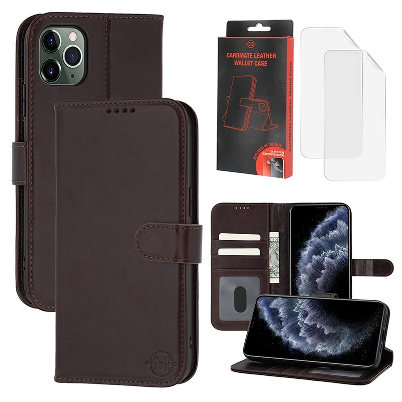 • MyTPhone CardMate Premium Leder Wallet Case für iPhone 11 Pro Max - Standfunktion, Kartenhalter, Unterstützung für drahtloses Laden, 2x Displayschutzfolie