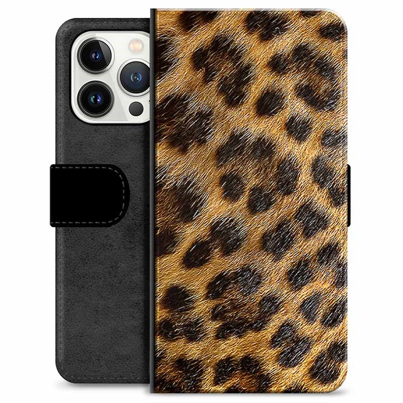 iPhone 13 Pro Premium Schutzhülle mit Geldbörse - Leopard