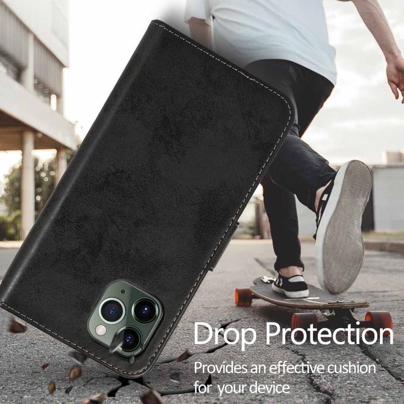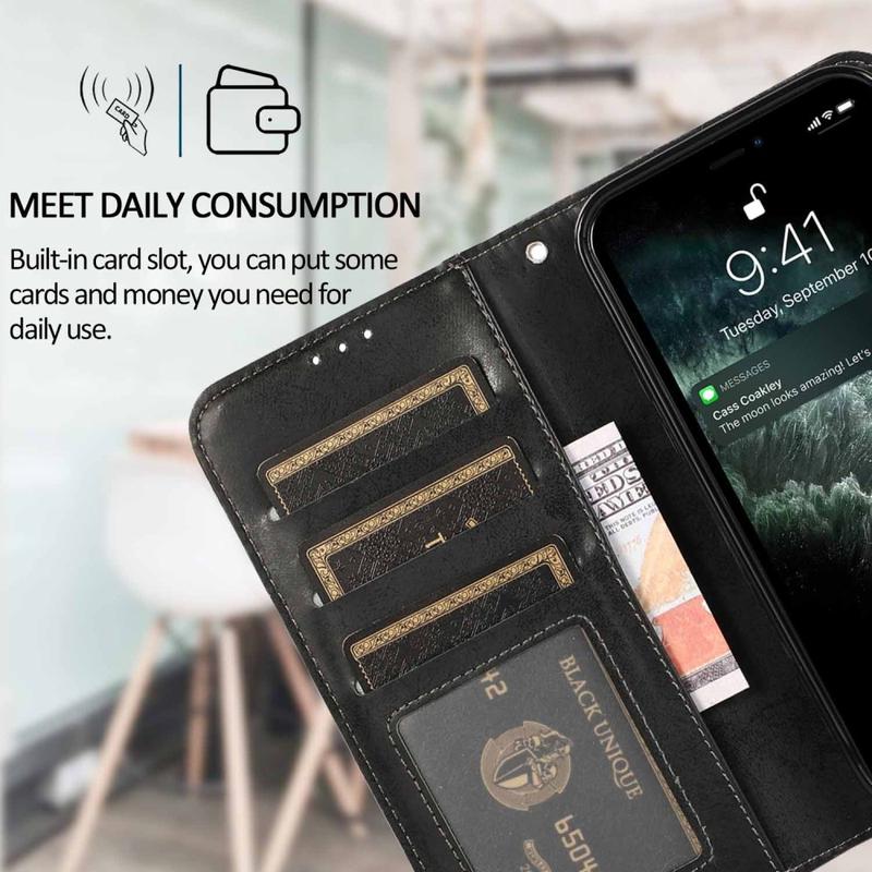 Diese Hülle aus mattem Retro-Polyurethan mit einer weichen TPU-Innenhülle bietet ein angenehmes Tragegefühl und zuverlässigen Schutz vor alltäglichen Kratzern, Stößen und Abnutzung. Die integrierte Geldbörse verfügt über 3 Kartenfächer und ein Bargeldfach, sodass Sie Ihre wichtigsten Dinge bequem an einem Ort verstauen können. Das faltbare Design dient gleichzeitig als Ständer und ermöglicht Ihnen einen bequemeren, freihändigen Betrachtungswinkel für Videos, beim Surfen oder bei Anrufen.