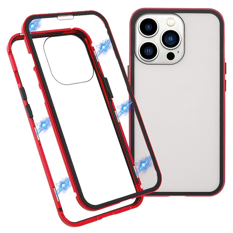 iPhone 13 Pro Magnetisches Cover mit Panzerglas - Rot