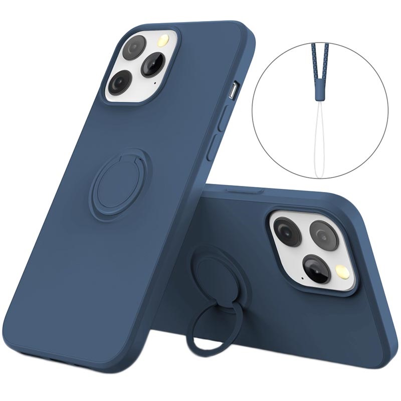 Liquid Silikonhülle mit Ringhalterung für iPhone 13 Pro Max - mit Trageriemen
