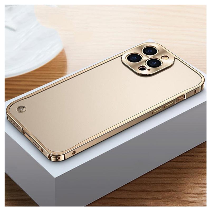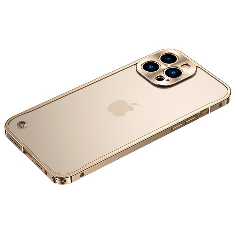 iPhone 13 Pro Metall Bumper mit Panzerglas Rückseite - GoldiPhone 13 Pro Metall Bumper mit Panzerglas Rückseite - Gold