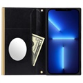 iPhone 13 Pro Schutzhülle mit Geldbörse mit Schminkspiegel - Schwarz