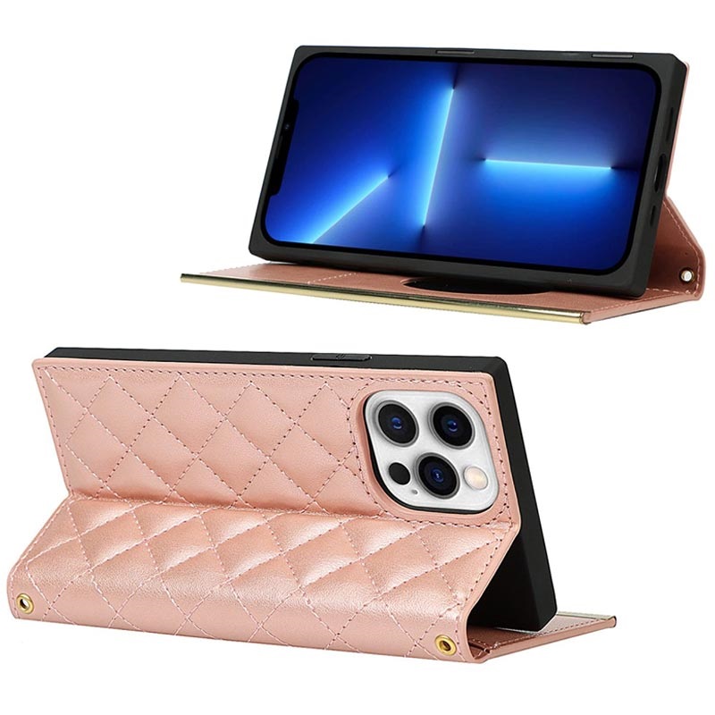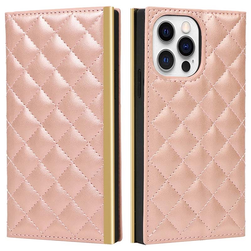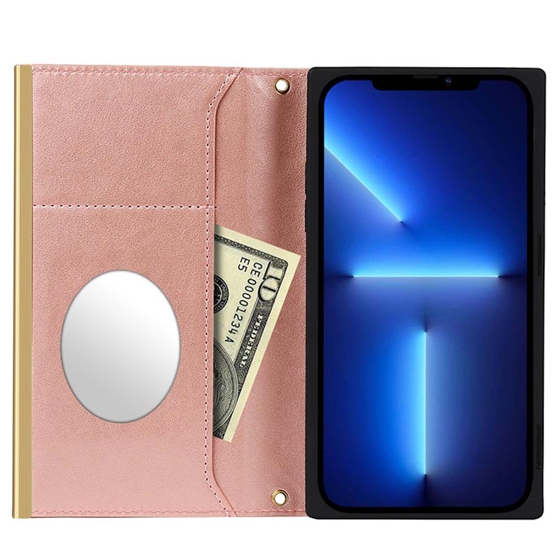 iPhone 13 Pro Schutzhülle mit Geldbörse mit Schminkspiegel - Roségold