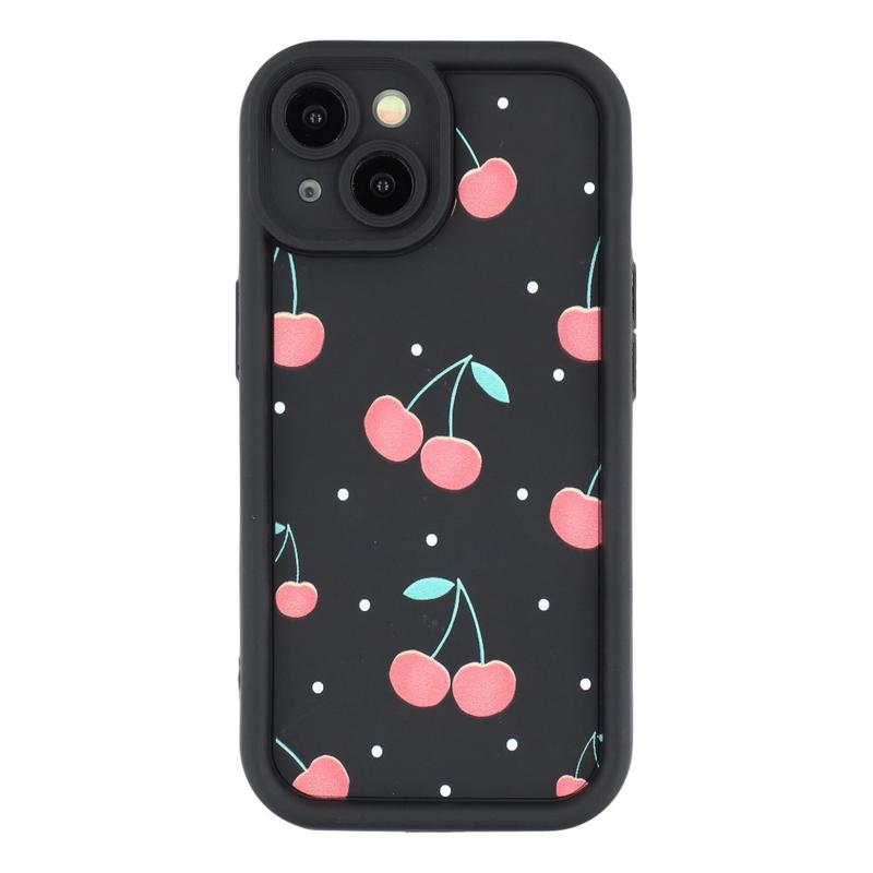 iPhone 13 Stilvolle stoßfeste TPU-Hülle mit erhöhten Kanten - Schwarz / Kirschen