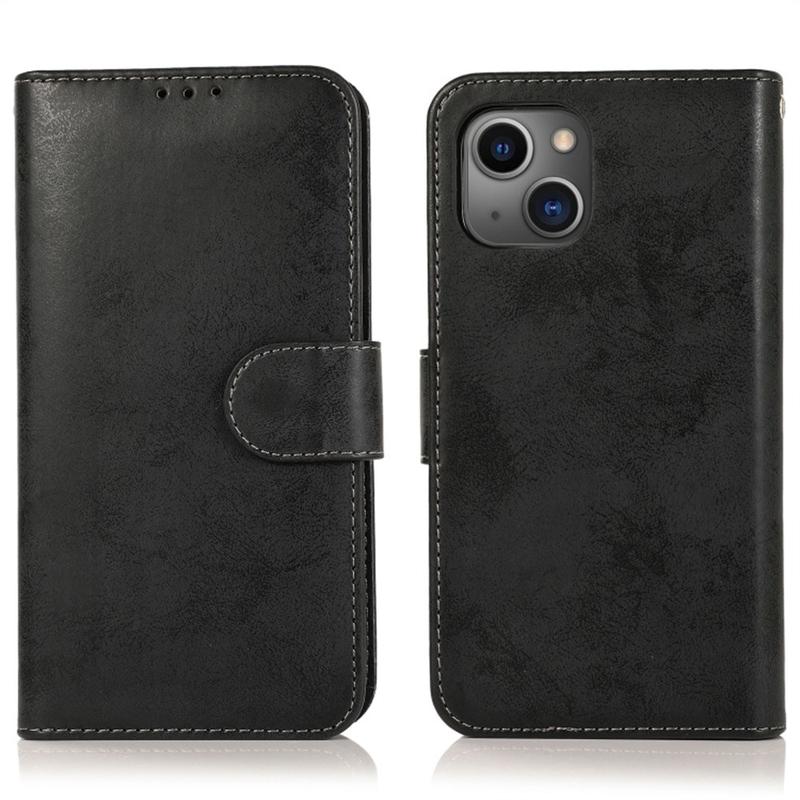 iPhone 13 Vintage 2-in-1-Geldbörsenhülle mit abnehmbarer Abdeckung - Schwarz