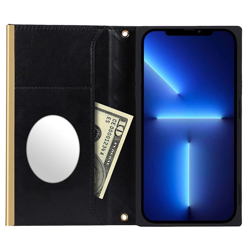 iPhone 13 Wallet Hülle mit Schminkspiegel - Schwarz