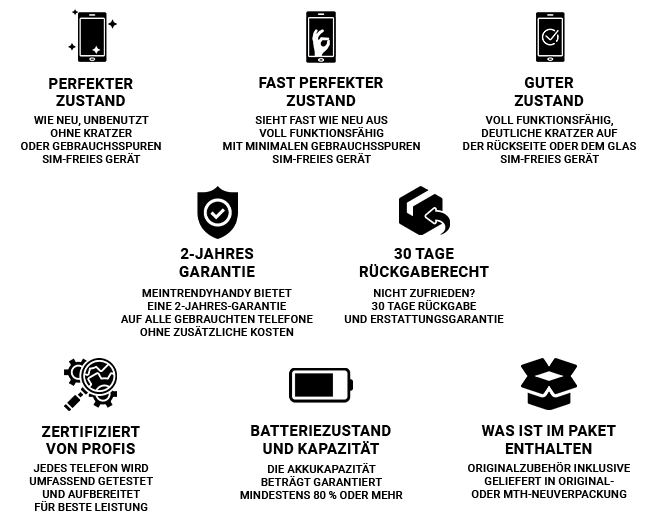 Dies ist ein zertifiziertes Gebrauchtgerät, was bedeutet, dass das Smartphone vorher benutzt und an uns verkauft wurde. Wir haben es sorgfältig getestet, dadurch ist die Funktion nachweislich bewiesen. Daher können Sie stets sicher sein, dass Sie ein gutes und günstiges gebrauchtes Handy in unserem Online-Shop kaufen.