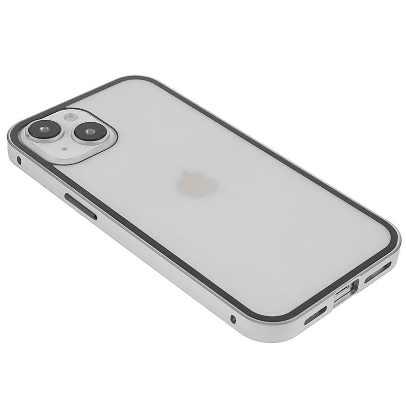 iPhone 14 Magnetisches Cover mit Panzerglas - 9H - Silber
