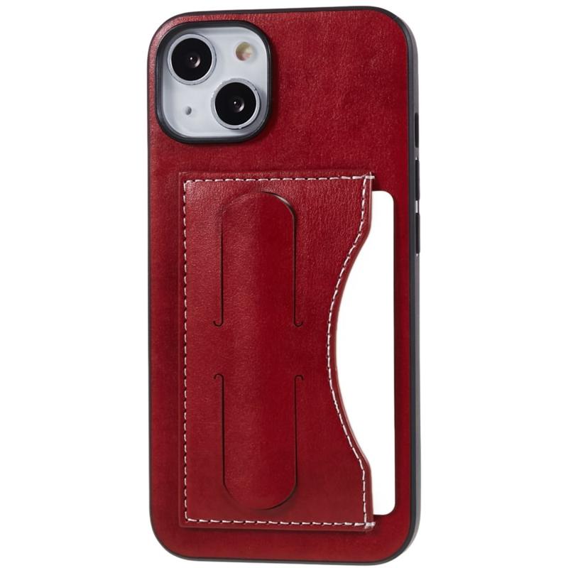 iPhone 14 Plus Beschichtet Cover mit Kartenschlitz und Ständer - Rot