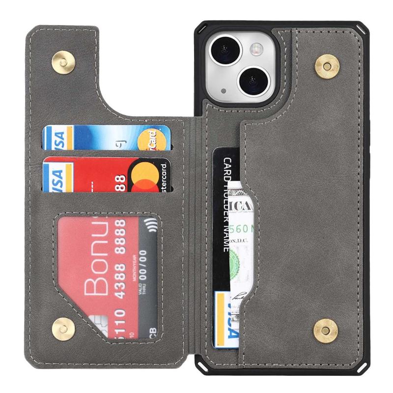 iPhone 14 Plus Magnetisches Kickstand Wallet Hülle - Grau