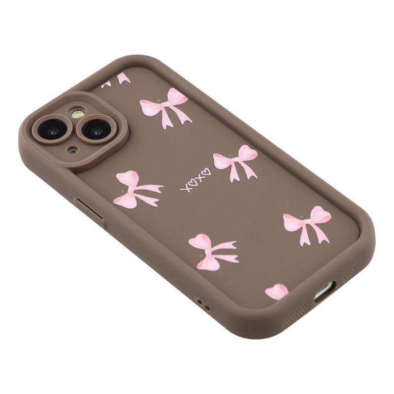 iPhone 14 Plus Stilvolle stoßfest TPU-Hülle mit erhöhten Kanten - Braun / Schleife